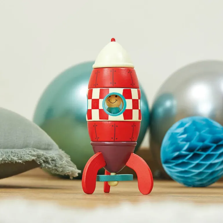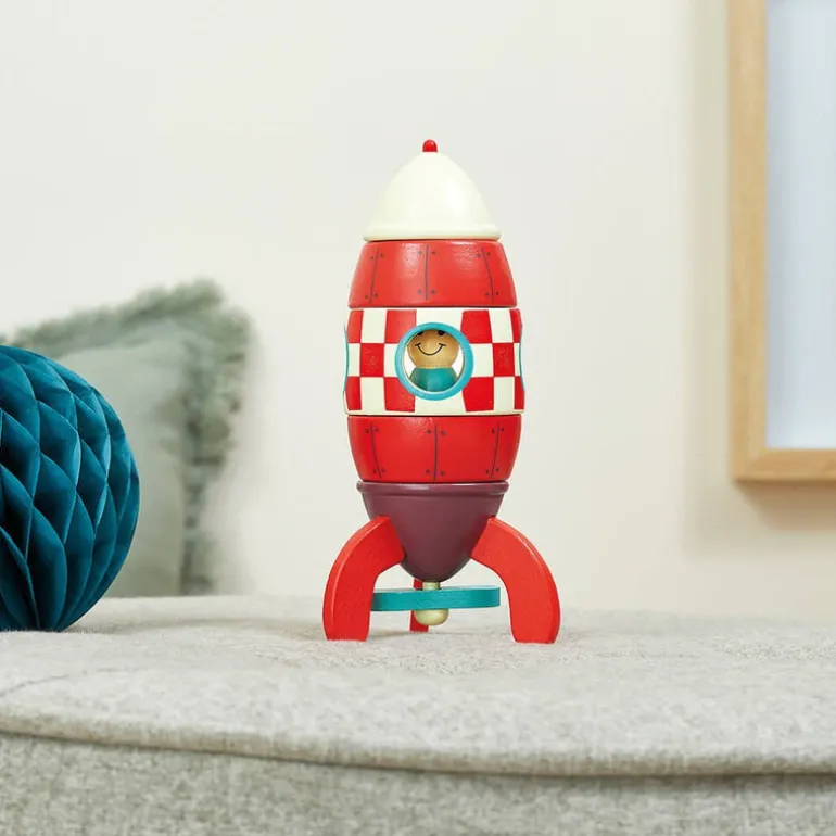 2 in 1 game : a rocket to build… to assemble and disassemble as many time as you want… and a toy (when assembled, the child can really play with the rocket as all the pieces stay together. Has a little astronaut inside.