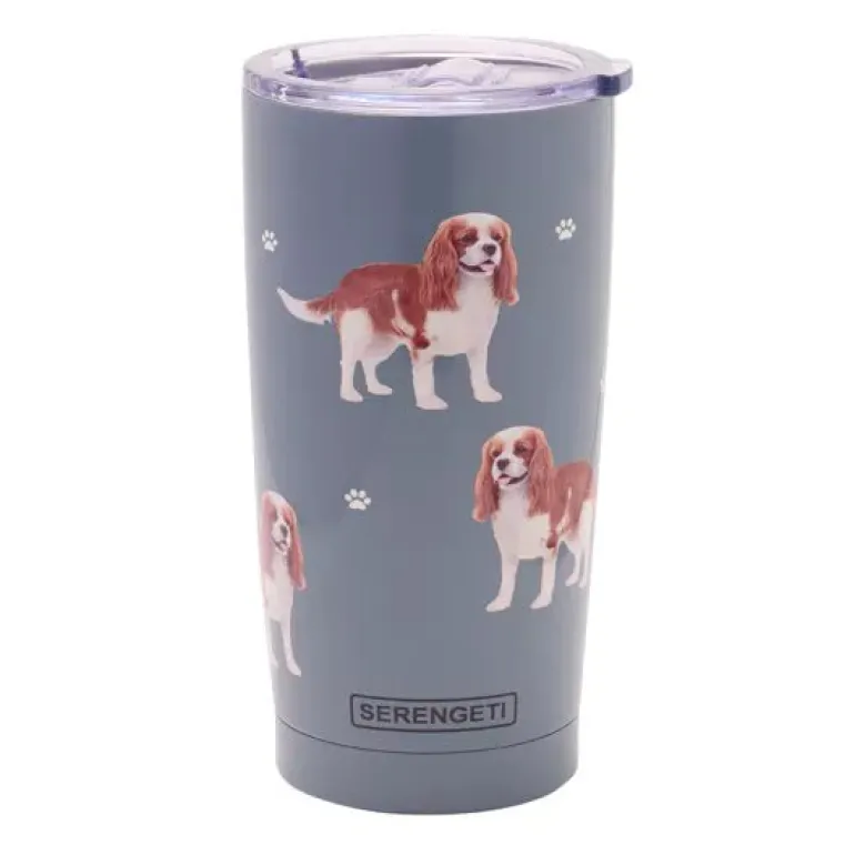 An E & S Pets Cavalier King Charles Spaniel Serengeti Tumbler by Best of Breed. Ever wanted to stock a large tumbler where the contents stay hot or cold for hours? Well, now you can with this 591ml ultimate tumbler. With Jack Russell images beautifully adorned around the outside, this is an absolute must for all dog lovers. It features 3D German technology, is vacuum insulated, and has a spill proof lid. Ideal for when travelling or heading into work. Comes packaged with a card strip at the bottom.