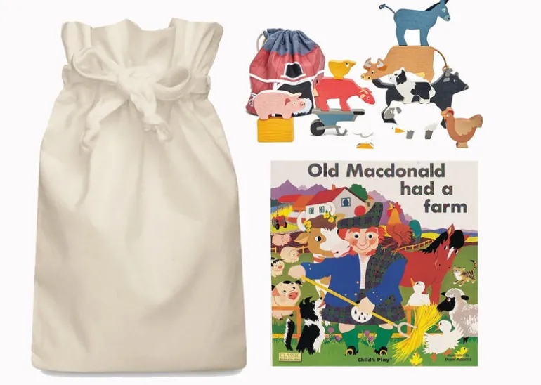 Old MacDonald had a farm Story Sack. A Fun Board Book with Peek through surprises. Old MacDonald had a Farm is a classic book that children love. We have paired the book with the lovely Tender Leaf Farmyard Stacking Animals giving little ones lots of options to play with their animals.