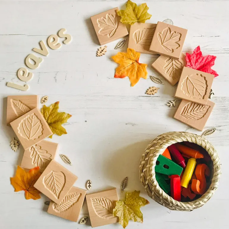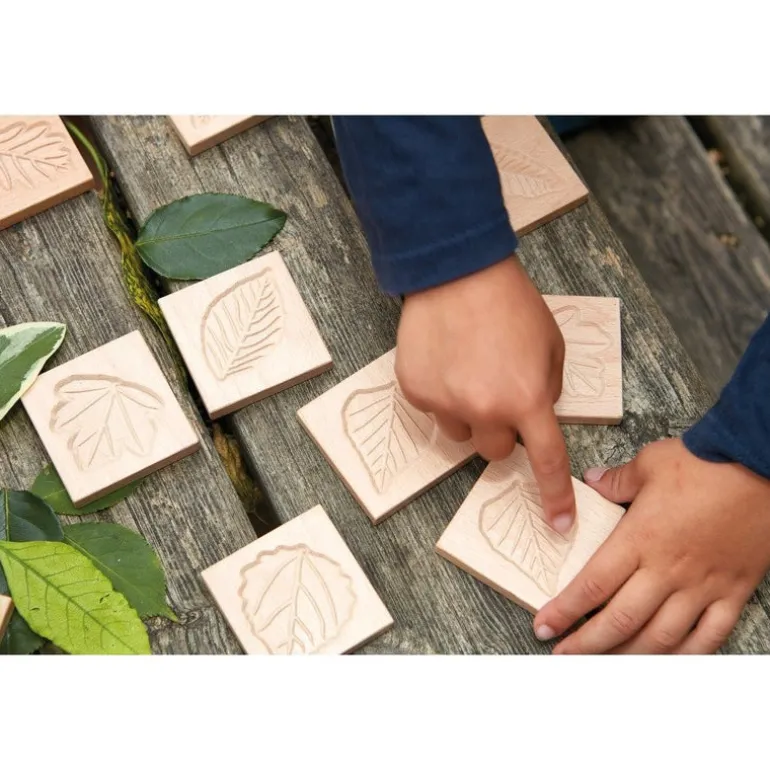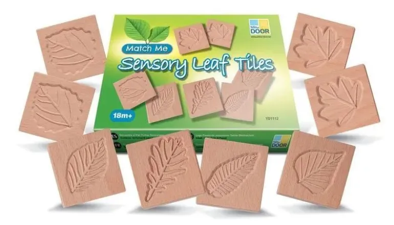 Beautiful wooden Leaf Tiles from Yellow Door. The Wooden Tiles offer an engaging, tactile way to explore pattern and shape in the natural world. They are perfect for matching games, developing language, creating rubbings, taking imprints, as well as being an appealing resource for treasure baskets.