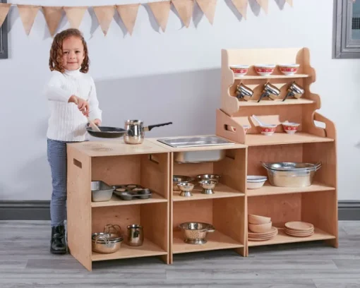 A perfect compact and sturdy kitchen set. All parts operate separately and it makes a super addition to a home corner. Combine with our Healdswood furniture range.