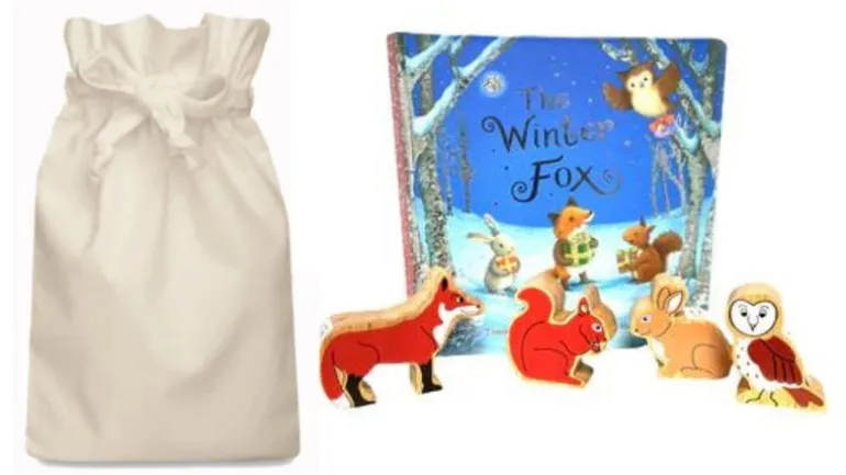 The Winter Fox Story Sack, perfect for story-time on those cold winter nights. The Winter Fox is a heart-warming picture book written by bestselling author Timothy Knapman, with artwork by highly acclaimed Snow Bunny illustrator, Rebecca Harry. With silver foil on every page! Fox loves to play, but his friends are worried about him, it’s nearly winter, and it’s time he started getting ready! Each animal knows just what Fox should do, if only he would listen to them…
