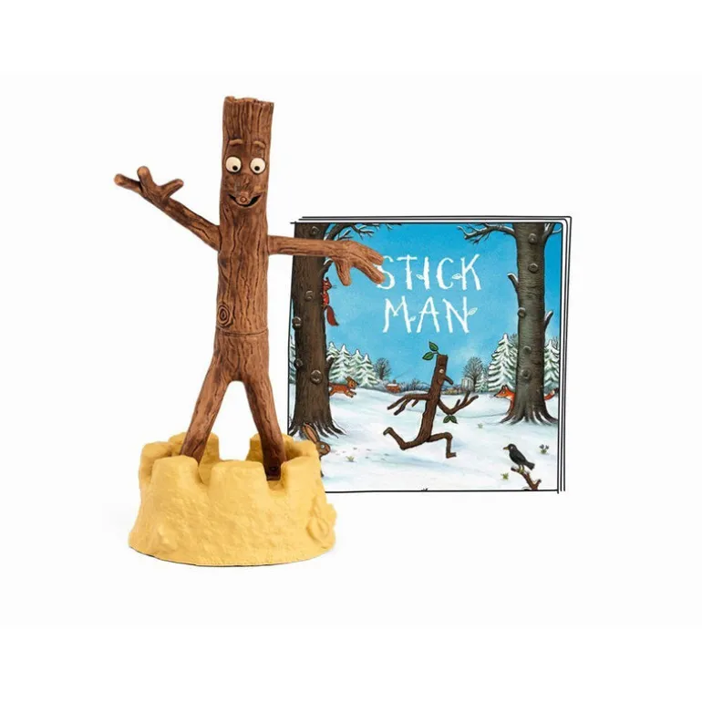 Stickman Tonie. The Stick Man lives in the family tree with his Stick Lady Love and their stick children three… But the world is a dangerous place for a Stick Man. A dog wants to play with him. A swan builds her nest with him. He even ends up on a fire! Will he ever get back to the family tree?